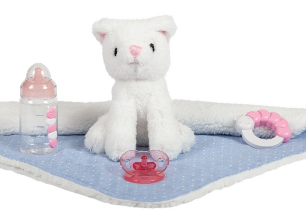 Кукла имеет элегантный стиль и поставляется в красивой фирменной коробке, идеальна в качестве подарка. В комплект также входит очаровательный талисман в виде котенка, мягкий плед, погремушка, соска и бутылочка, создающие чудесные аттракционы для каждого малыша.
