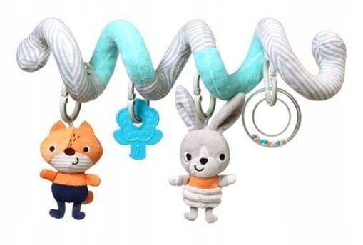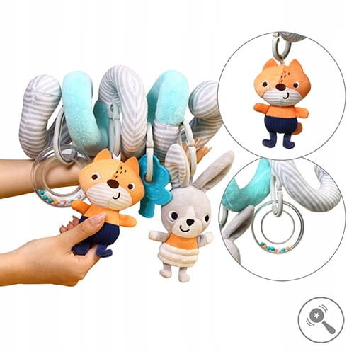 Подвеска легко устанавливается благодаря своей спиралевидной форме. Вы можете легко прикрепить его в месте, до которого легко дотянется ваш ребенок – на подлокотнике автокресла или переноски или в коляске.