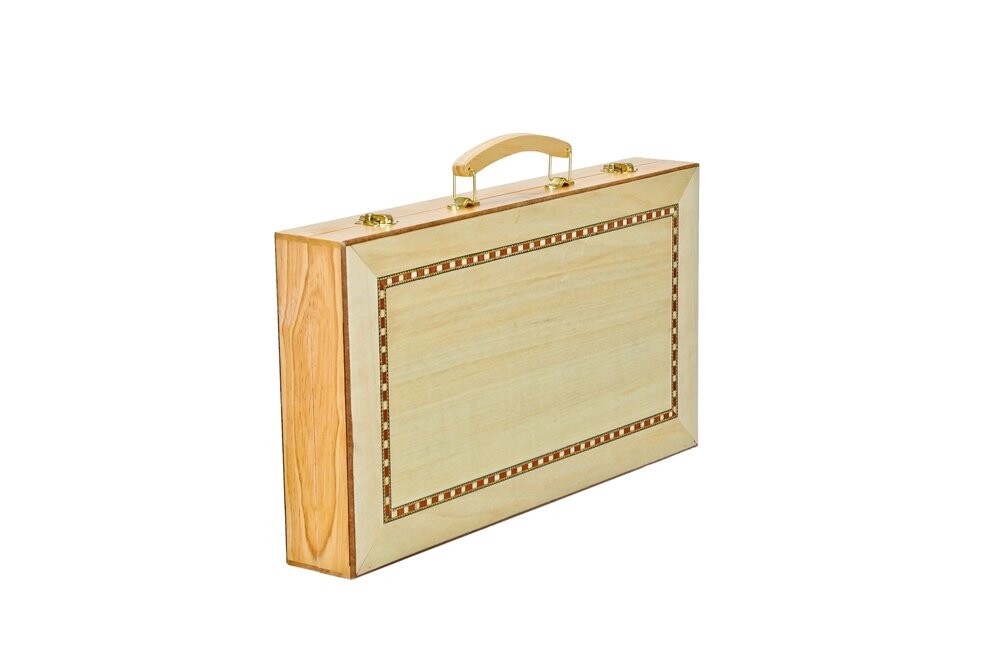 Нарды 447 Бук - ИнтарсияНарды в футляре из бука со вставкой натурального цветаИгровое поле для нард внутри - выполнено методом интарсияРазмеры Размер: 447 х 260 х 66 мм (после сборки)Блоки из платана, кубики стандартДиаметр: 30 мм