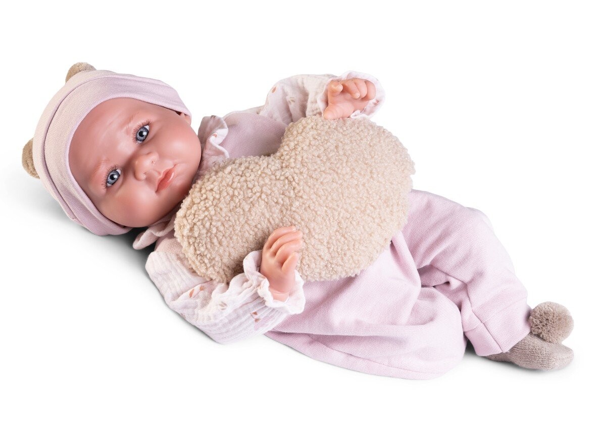Recien Nacida — это эксклюзивная коллекция испанских кукол от всемирно известного бренда Antonio Juan. Ребенок ростом 42 см имеет вес, близкий к весу новорожденного – ок. 2000 г. У него мягкий живот, виниловая голова и подвижные шарнирные конечности. Благодаря этому его можно сажать и расставлять в различных положениях. Luca выглядит как настоящий ребенок благодаря дизайну ручной работы и вниманию к каждой детали. Испанские виниловые куклы с мягким пузиком ценятся коллекционерами, владельцами родильных домов и магазинов детских колясок. а также любима маленькими любителями оригинальных игрушек.