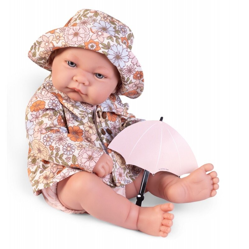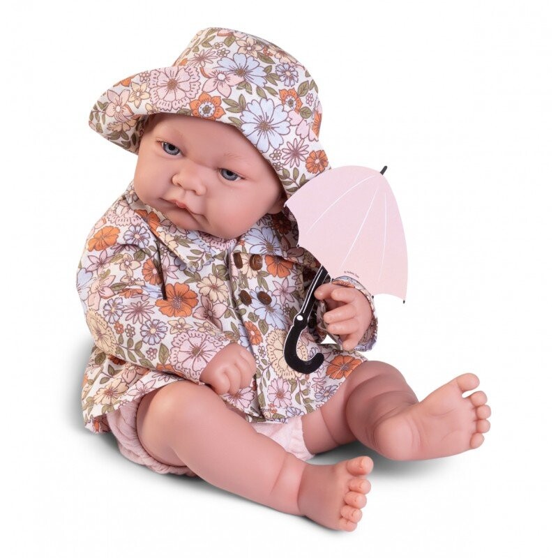 Ника 50405 в красивом, ярком стиле любит играть с зонтиком. Эта новорожденная еще одна дополняющая модель. коллекция виниловых кукол для купания. Предлагаемая модель расширит богатый ассортимент серии Recien Nacida Antonio Juan. У ребенка нет волос, а на голове есть резьба. Дополнительно поверхность головы затемнена. чтобы он был похож на новорожденного. Кукла ростом 42 см, весом около килограмма и очень рада играть с кем угодно. У него нарисованные вручную голубые глаза, похожие на детские.