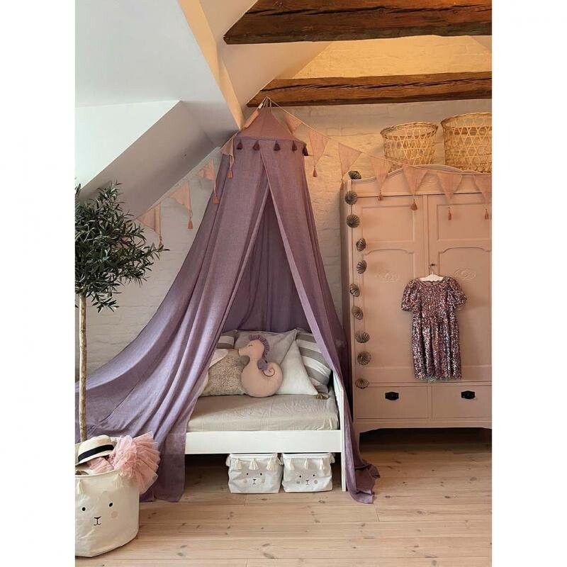 Сказочный балдахин лавандового цвета станет прекрасным декоративным дополнением детского интерьера.  Лавандовый цвет идеально подойдет как для маленькой принцессы, так и для большой леди: он убаюкивает, словно мягкое облако в небе. При установке над кроватью он может выполнять не только декоративные функции, но и служить москитной сеткой или защитой от солнечных лучей. Изготовлен из материалов высочайшего качества - чрезвычайно прочный, устойчивый к солнечному свету, гибкий и легкий, как туман, также идеально подходит для аллергиков. Крепится к потолку или стене. Его можно использовать как игровую палатку для детей старшего возраста. Он идеально сочетается с другими аксессуарами для детской комнаты шведского бренда Jabadabado, известного и ценимого во всем мире за свой дизайн, качество и мастерство изготовления. Материал: полиэстер и хлопок. Чистка: рекомендуется ручная стирка. разрешена стирка при 30 градусах. Длина: 230 см. Покой, радость и беззаботность в неповторимом интерьере вашего ребенка – обеспечит мебель и аксессуары шведского бренда Jabadabado. Обстановка комнаты вашего ребенка и среда, в которой он проводит время, оказывают огромное влияние на его самочувствие, индивидуальность и чувство вкуса. Позаботьтесь о том, чтобы ваш малыш всегда чувствовал себя хорошо, безопасно и приятно в собственном интерьере! Jabadabado — шведская компания, работающая на рынке с 1993 года, специализирующаяся на разработке и производстве деревянных игрушек и элементов оборудования детских комнат. Вся продукция Jabadabado отличается оригинальным дизайном, красивыми цветами и чрезвычайно тщательным исполнением. Все игрушки Jabadabado разработаны с учетом интересов детей и поощряют творческую игру.