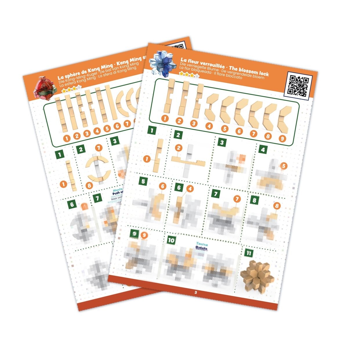 ВНИМАНИЕ: набор содержит графические инструкции с инструкциями по сборке каждой головоломки, а также QR-коды, которые переведут вас к видеороликам с решениями.
