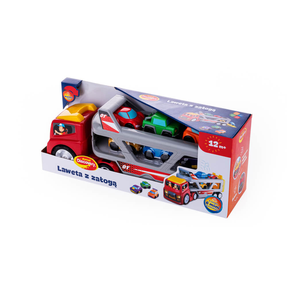 Прицеп оборудован пандусом с заниженным входом, что облегчает посадку автомобилей и выезд на борт. место на одном из уровней. Товар предназначен для детей от 12 месяцев.