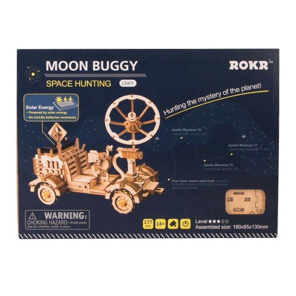 Набор для сборки деревянного планетохода Рамблер, работающего на 100% солнечной энергии! Модель имеет специальную панель, которая под воздействием солнечного света передает энергию двигателю, приводящему в движение автомобиль. Набор изготовлен из высококачественной фанеры и имеет вид листов с предварительно вырезанными и пронумерованными элементами, которые перед сборкой необходимо отделить от выреза, а затем соединить в соответствии с подробной инструкцией, входящей в комплект поставки. Игра с марсоходом позволит приятно провести время на природе и поможет лучше понять, что такое возобновляемые источники энергии.