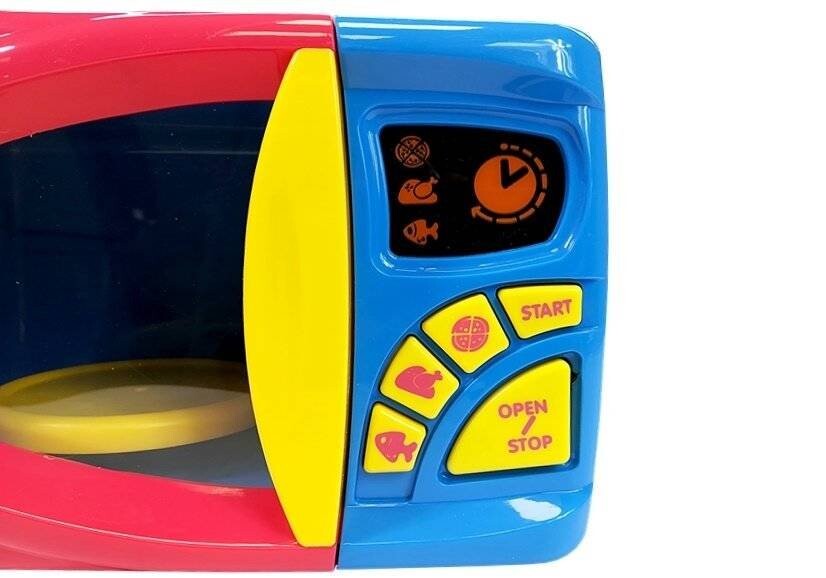 Дети, которые любят готовить и заниматься хозяйством, любят игрушки, которые работают так же, как их настоящие аналоги. Этот тип игрушек представляет собой реалистично работающую микроволновую печь с аксессуарами. Благодаря его функциям ваш ребенок сможет воссоздать весь процесс разогрева еды, включая ожидание сигнала об окончании! Игрушечная микроволновка окрашена в красный и синий цвета, на фоне ярко-желтые кнопки с маркировкой. С помощью кнопок с символами рыбы, курицы и пиццы можно выбрать время работы духовки, кнопка СТАРТ запускает программу, а кнопка ОТКРЫТЬ/СТОП останавливает работу и открывает дверцу. В набор входят пластиковые игрушки рыбки, запеченная курица и пицца. а также пластиковые бутылки, символизирующие кетчуп и горчицу. Игрушка готова к работе после выдергивания штыря, расположенного на задней стороне устройства. После выбора программы и нажатия кнопки СТАРТ начнется звуковой эффект микроволновой печи, внутри включится свет и начнёт вращаться тарелка с находящейся внутри едой. Набор продается в яркой, эстетичной упаковке с большим прозрачным окном, позволяющим детально рассмотреть внутреннее пространство. Из-за мелких деталей игрушка не подходит детям до 3 лет. Размеры игрушки: 23,5 см х 15,5 см х 14 см. Размеры упаковки: 44,5 см х 21 см х 15 см.