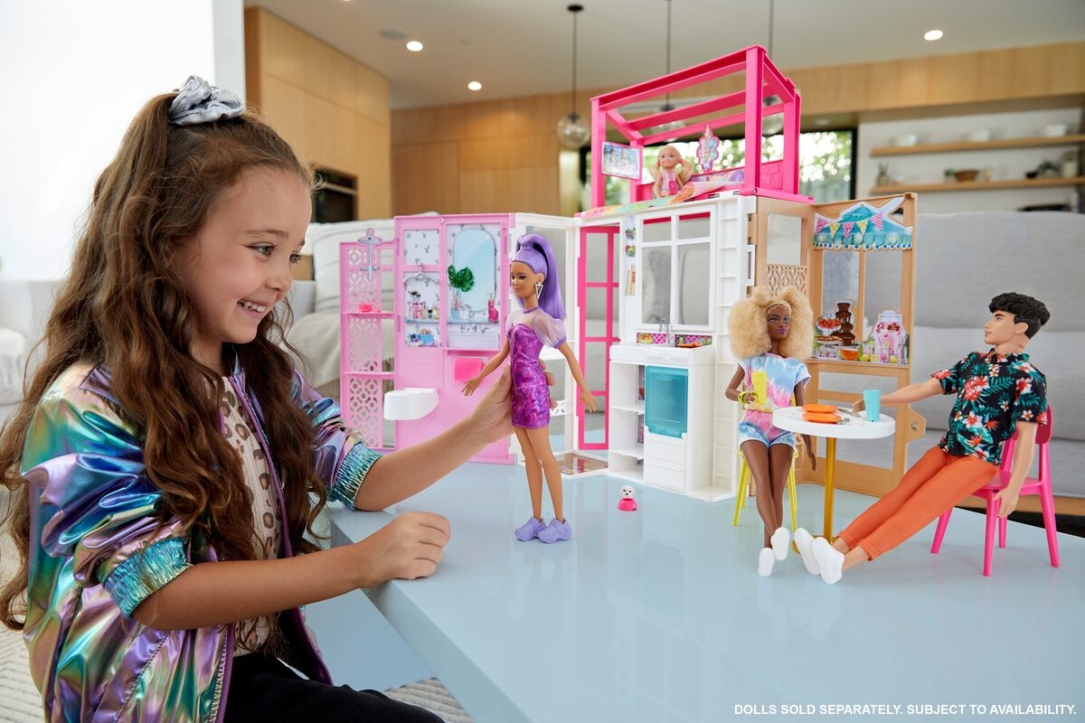 Компактный кукольный домик Барби Когда воображение открывает дверь полностью меблированному кукольному домику Барби, дети открывают для себя безграничные возможности рассказывать свои собственные истории! В двухэтажном доме четыре игровые зоны, играть в которые можно со всех сторон.