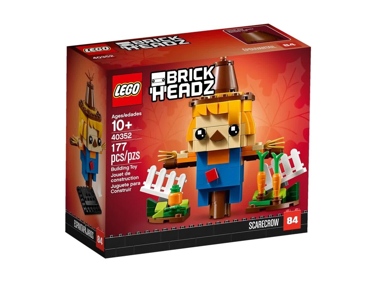 Соберите очаровательную фигурку LEGO Brickheadz 40352 «Страх на День благодарения» с деревенской сценой, изображающей морковь и белый частокол — отличный способ сказать спасибо за еще один успешный урожай. Модель идеально подойдет в качестве украшения на День благодарения в Америке или в качестве подарка любителям LEGO.