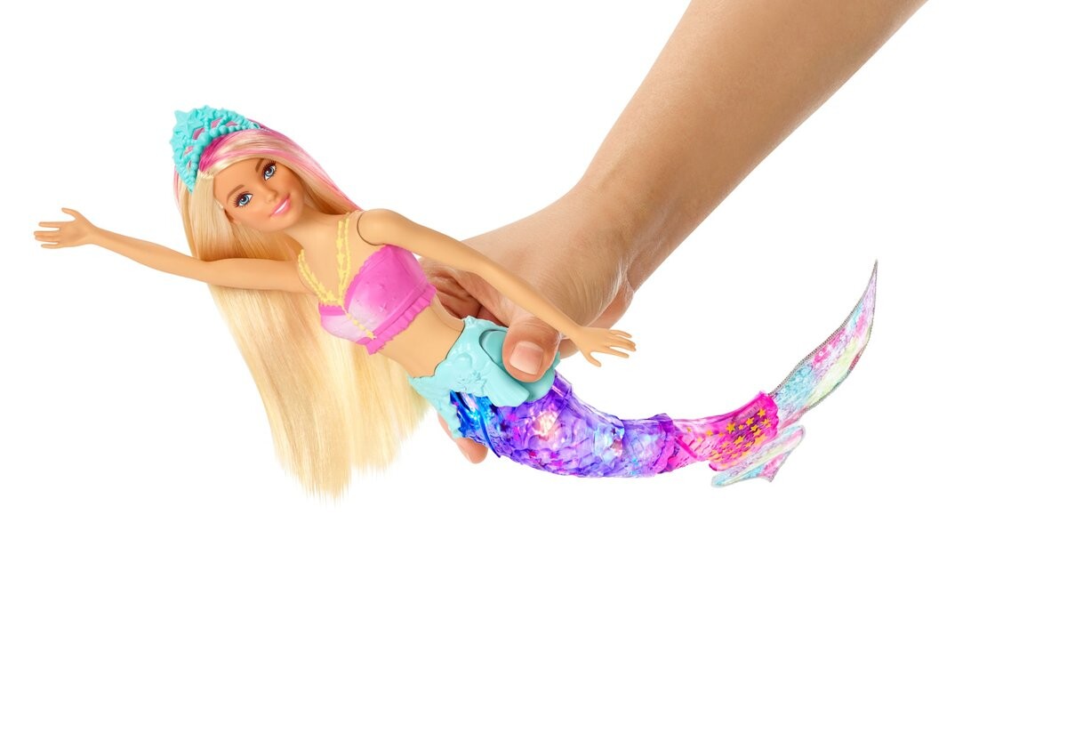 Погрузитесь в волшебный мир Barbie Dreamtopia, где мечты сбываются! Волшебная русалка поражает и восхищает своим фантастическим развевающимся хвостом и радужным световым шоу.