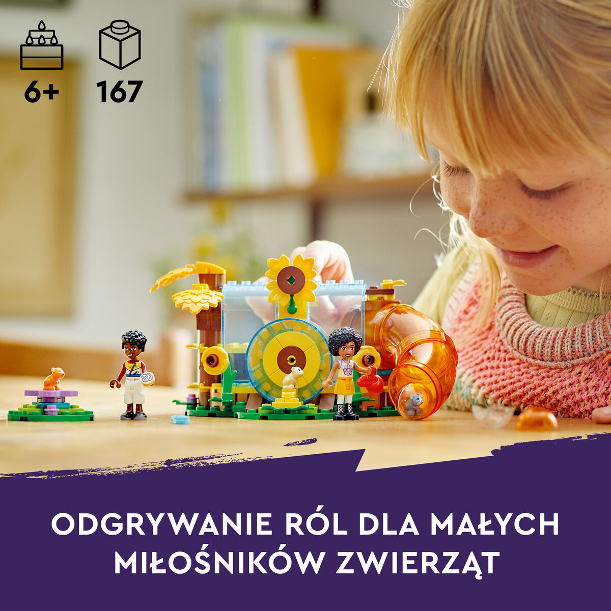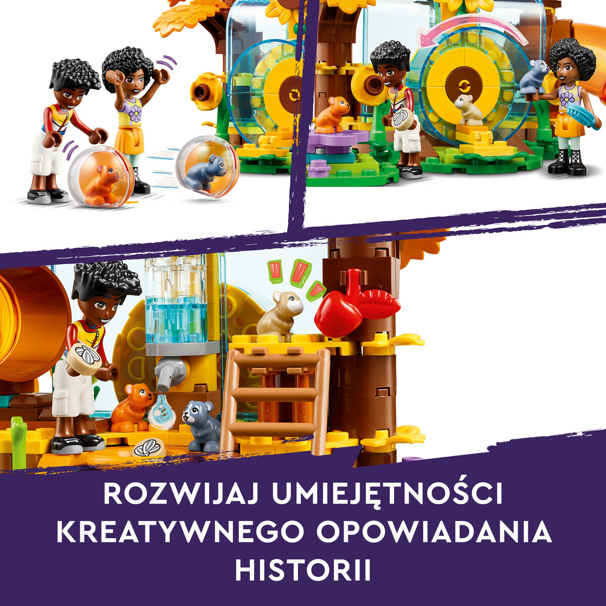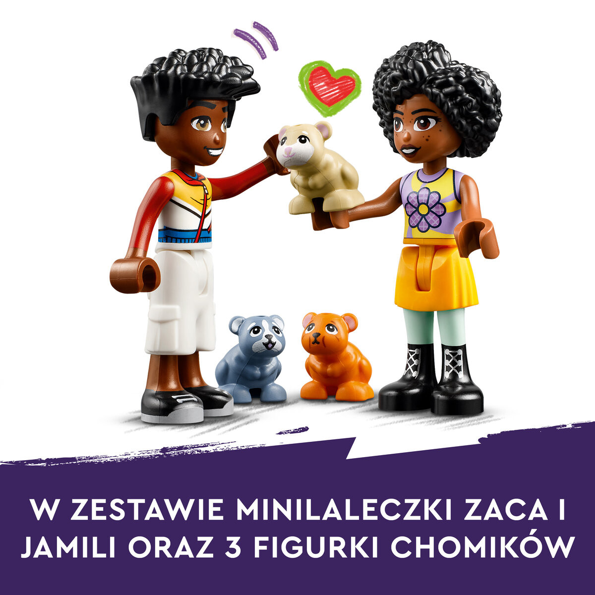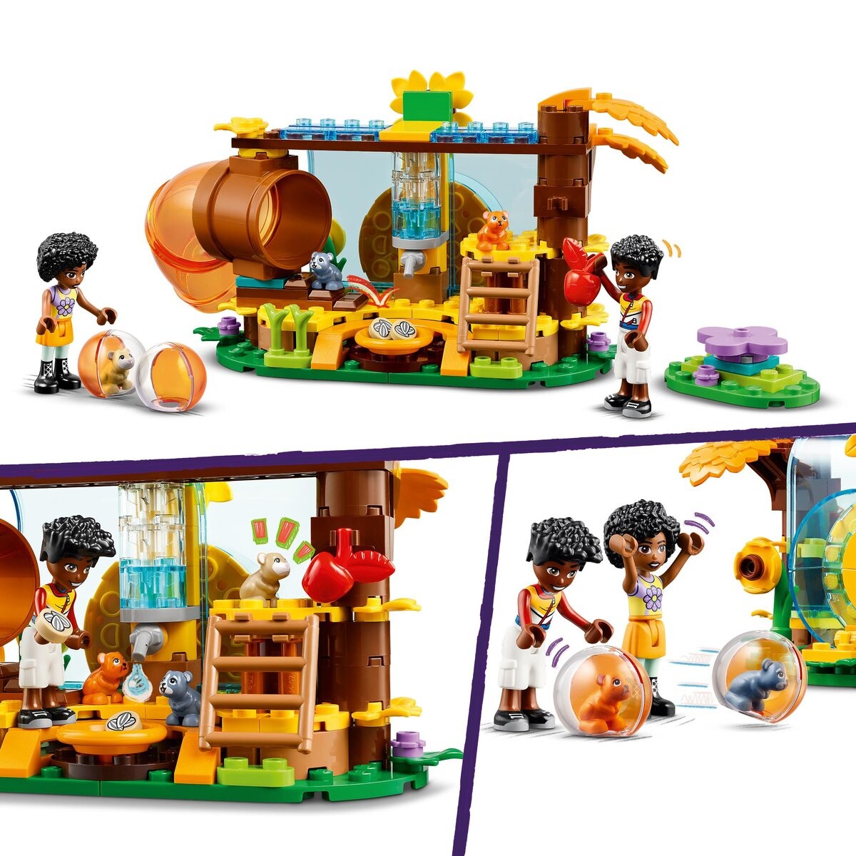 Игровая площадка для хомяков LEGO FriendsДве мини-куклы и три хомякаВ набор входят Зак и Джамиля, а также хомячки Смешек, Бин и Грыжек.