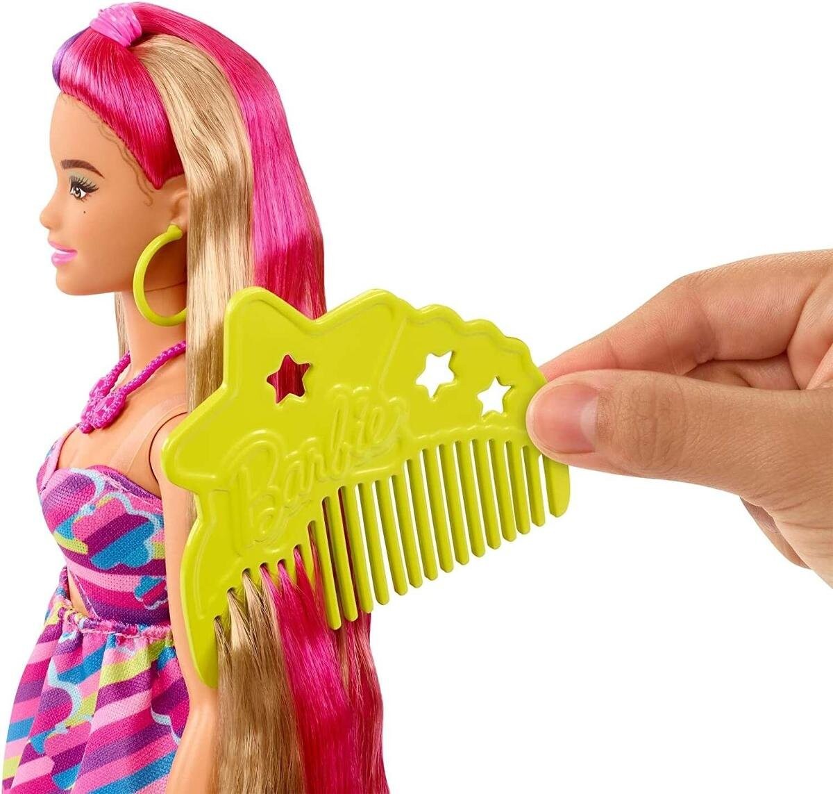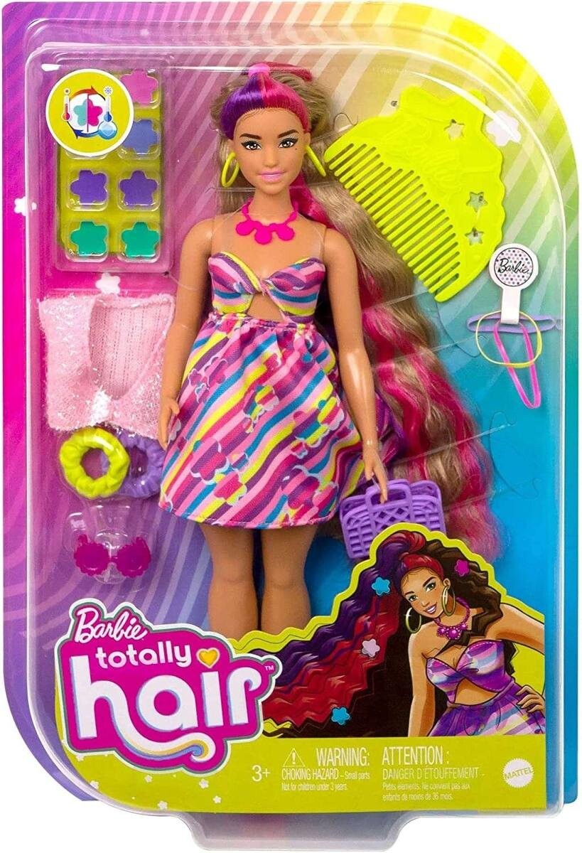Barbie Totally HairВдохновленная чрезвычайно популярной куклой Barbie 30-летней давности, кукла Barbie Totally Hair с цветочным рисунком имеет свой собственный поразительный стиль и прическу. У куклы очень длинные волосы (21,5 см), которые можно укладывать по своему усмотрению. Содержимое набораВ наборе более 15 дополнительных элементов, в том числе 8 заколок, меняющих цвет, аксессуары и дополнительный наряд. Пышная кукла Barbie имеет розовые и фиолетовые блики и хвост из волнистых волос. На ней платье с ромашковым принтом и вырезом. Детям понравится создавать разные прически и иметь безграничные возможности для укладки! Кукла не стоит сама по себе. Цвета и декоративные элементы могут различаться. Для детей от 3 лет. Кукла Barbie Totally Hair с цветочным мотивом имеет свой уникальный стиль и прическу. вдохновлен чрезвычайно популярной моделью Барби, созданной 30 лет назад. Особенности куклыУ Барби очень длинные волосы (21,5 см) и более 15 дополнительных элементов: 8 заколок, меняющих цвет, расческа, 1 комплект резинок для волос, 2 махровые ткани, короткий свитер. , сумка, солнцезащитные очки и ожерелье. Запонки, меняющие цвет, доступны в 4 различных цветах и ​​меняют цвет в зависимости от температуры ваших пальцев — откройте для себя безграничные возможности создания стиля. У пышной куклы розовые и фиолетовые блики, а волосы собраны в хвост. Создайте прическу своей мечтыНа ней платье с принтом ромашки и вырезом. Детям понравится создавать разные прически и иметь безграничные возможности для укладки. Это идеальный подарок для детей от 3 лет, особенно для тех, кто любит открывать для себя разные стили и создавать прически и наряды.
