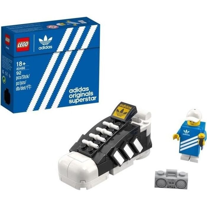 Поклонникам кроссовок и бренда adidas понравится собирать эту миниатюрную версию кроссовок adidas Originals Superstar LEGO с фигуркой, динамиком и микрофоном.
