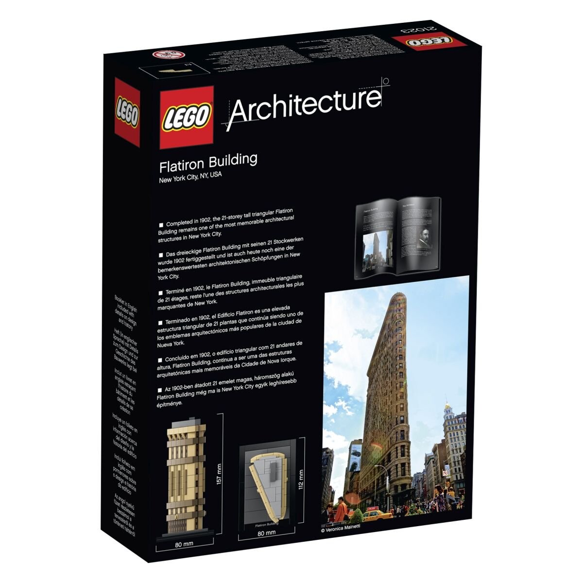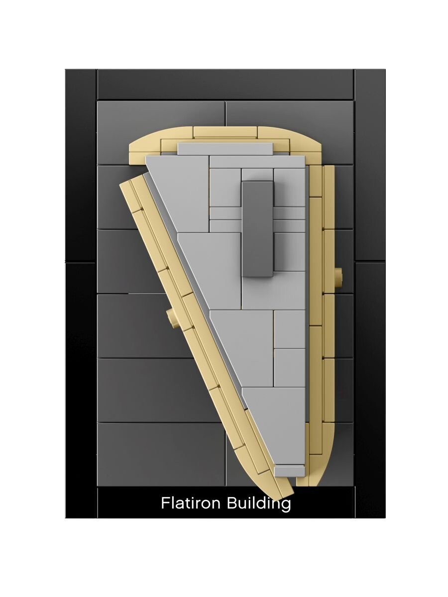 Здание Flatiron — один из самых знаковых небоскребов Нью-Йорка. Его можно найти на треугольном участке земли на углу Бродвея, Пятой авеню и 22-й улицы. Восточный. Набор состоит из 471 блока, благодаря которым вы сможете воссоздать небоскреб, первоначально называвшийся «Фуллер Билдинг». Модель учитывает текущий облик здания – включает в себя пентхаус. который был добавлен в 1905 году и увеличил Флатрион на один этаж, в результате чего в нем стало 21 этаж. Кирпичики Лего позволяют реально воспроизвести архитектурное сооружение, сохранив все детали и цвета. Сложное здание представляет собой отдельную, автономную модель.Характеристики набора Flatrion, 21023