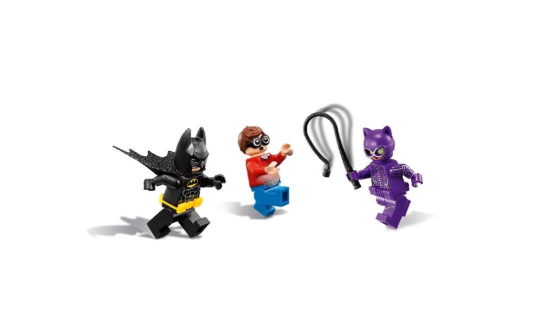 - Шесть минифигурок: Бэтмен, Дик Грейсон, Женщина-кошка, костюм мужчины-регги, костюм бэтнаута и костюм поджигателя