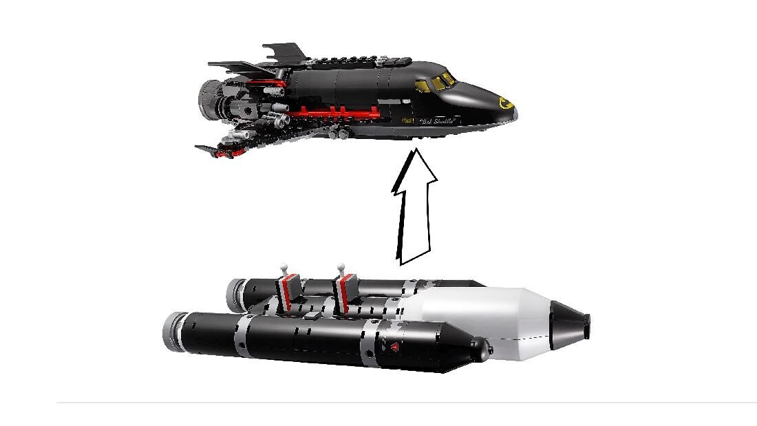 - Космический челнок Бэтмена оснащен тремя съемными ракетными двигателями