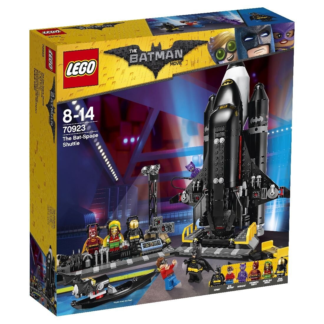 Кубики LEGO Batman Movie, «Шаттл Бэтмена», 70923Отправляйтесь в захватывающую космическую миссию на космическом корабле Бэтмена! Приготовьтесь вместе с Бэтменом и Диком Грейсоном в Бэтпещере, но остерегайтесь суперзлодейки-Женщины-кошки, которая пытается подкрасться к ним. Вы можете плавать по Бэт-пещере на каяке Бэтмена. Выберите модный наряд на раздвижной вешалке для костюмов — вы предпочитаете костюм Человека-регги, Бэтнаута или Поджигателя? Выбор за вами. Хватайте Бэтаранг, садитесь на шаттл и отправляйтесь на орбиту. Отсоедините три мощных ракетных двигателя, приземлитесь на Луну и отправляйтесь в приключение на луноходе Бэтмена!