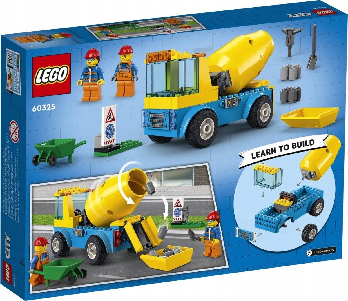 Детям от 4 лет и старше, увлекающимся строительными машинами, понравится набор LEGO City Concrete Mixer Truck, в который входят инструменты и 2 минифигурки.Модель бетоносмесителя LEGO City (60325)