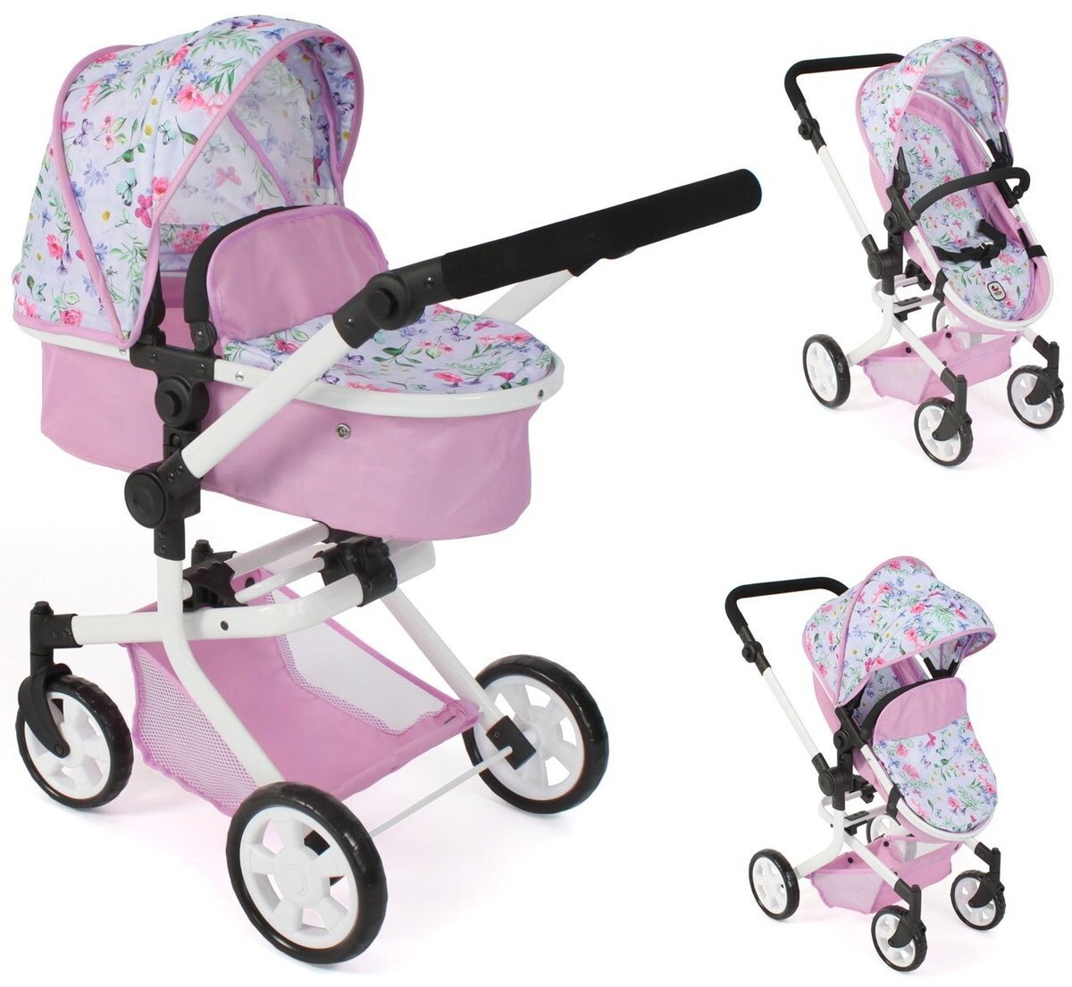 Теперь ваша маленькая кукла может наслаждаться роскошной коляской MIKA Kombi от Bayer Chic 595 53. Эта красивая розовая коляска с цветами подарит незабываемые минуты веселья и приключений!