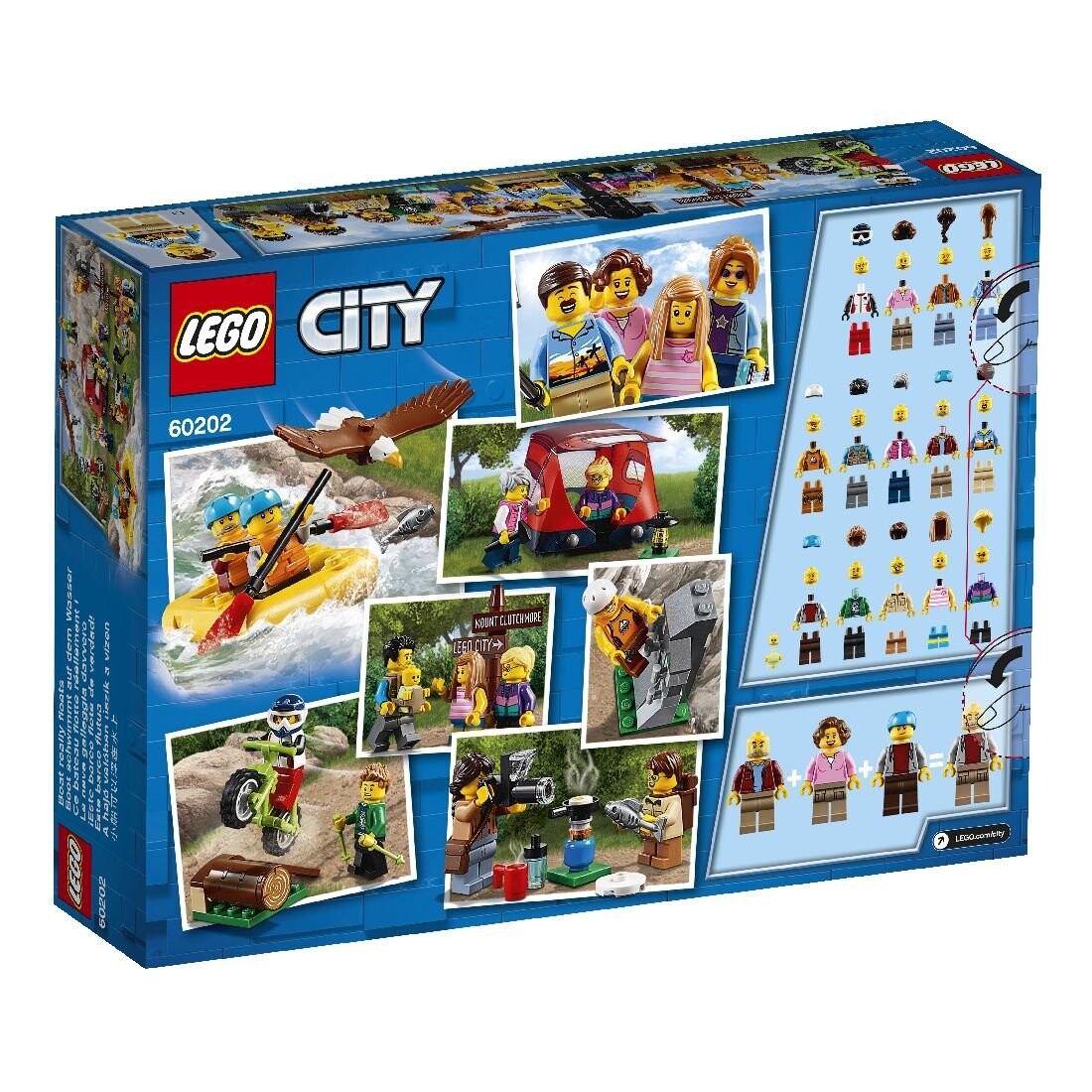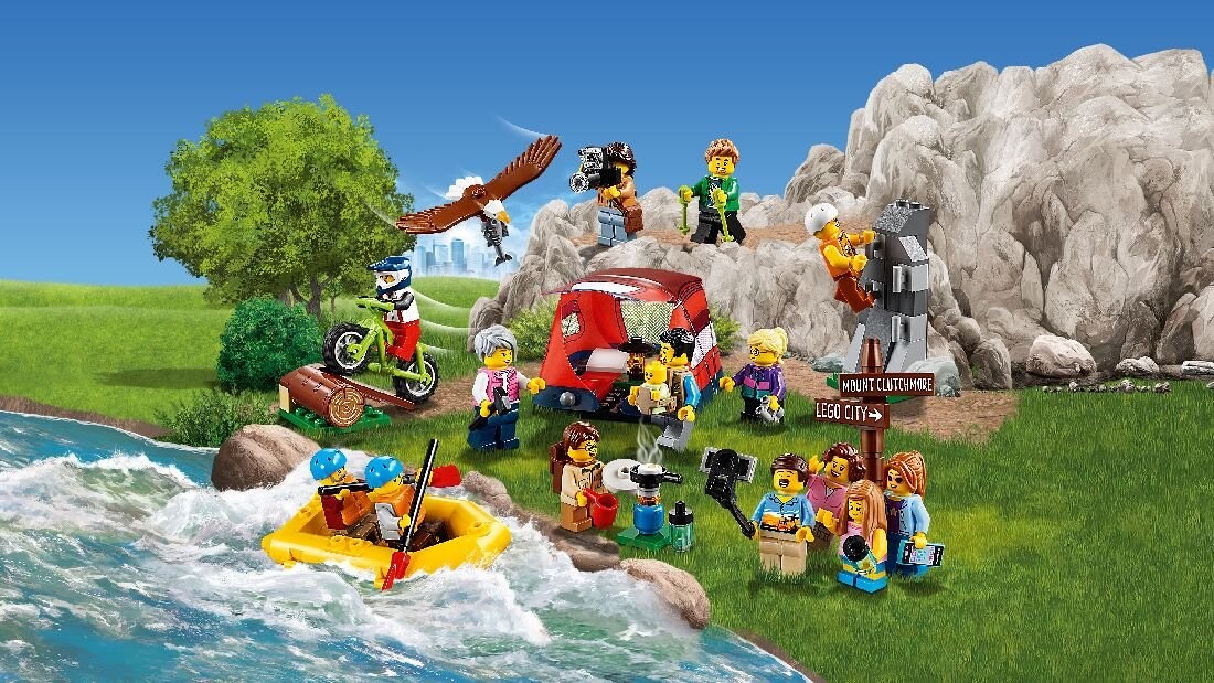 Познакомьтесь с группой новых минифигурок LEGO, наслаждающихся отдыхом на свежем воздухе, в наборе минифигурок LEGO City 60202 «Удивительные приключения»! Проверьте указатель на расположение лагеря. Разбейте там палатку и отправляйтесь в смелое рафтинг-путешествие. Затем прогуляйтесь по тропе, ведущей к горной стене, где вы сможете наблюдать за величественным орлом, ловящим рыбу в реке. Вернувшись в лагерь, сядьте на горный велосипед и совершите захватывающую поездку по лесу. С этим великолепным набором минифигурок LEGO City вам никогда не будет скучно!