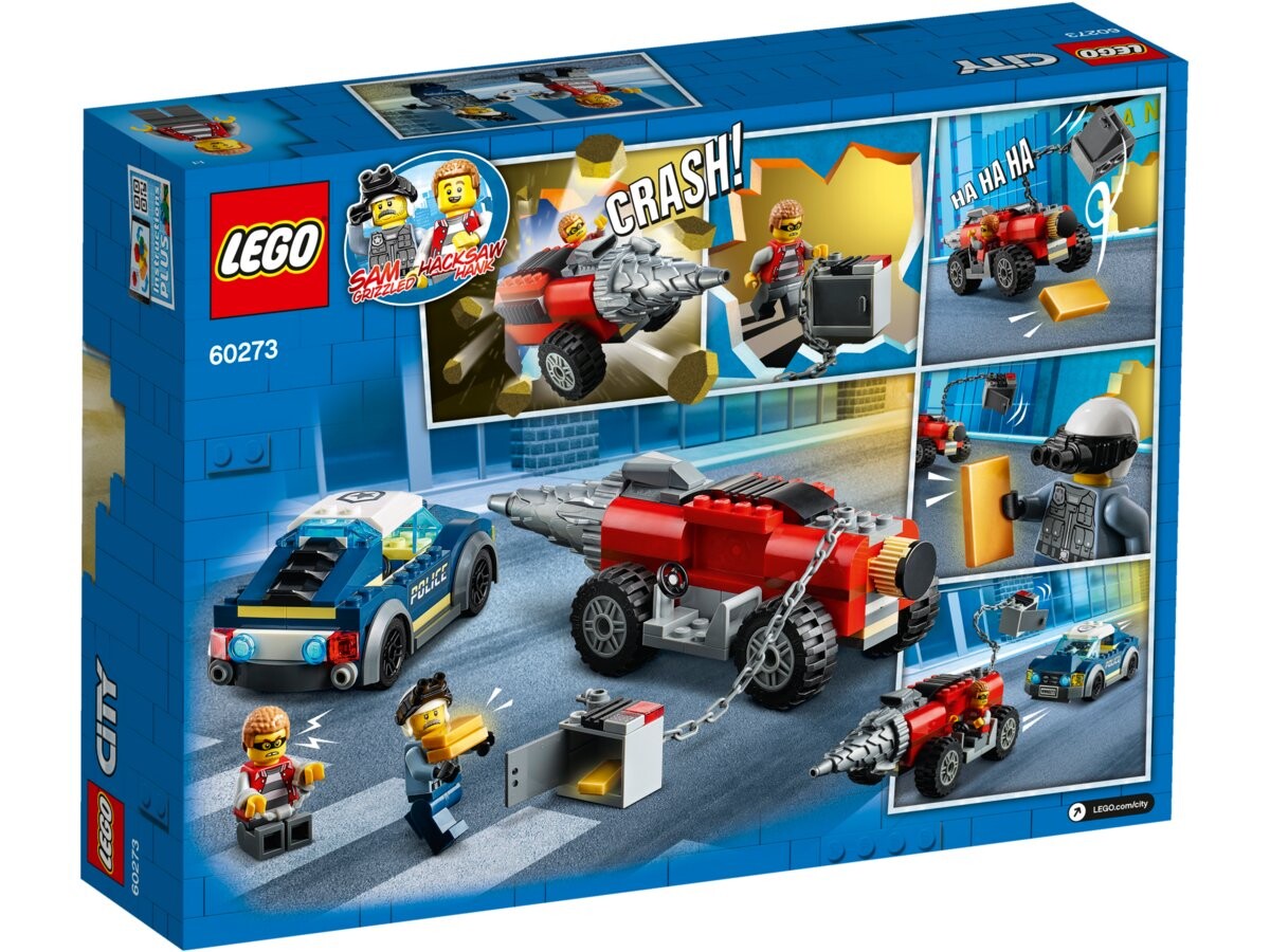 Набор LEGO City Police Drill Rig Chase (60273), полный аттракционов, понравится не только детям, интересующимся моделями автомобилей, но и поклонникам сериала LEGO City Adventures. В набор входят бронированная полицейская машина и буровая установка, идеально подходящая для ограблений банков, а также персонажи LEGO City Сэм Гриззл и Ножовка Хэнк, обеспечивающие безостановочное веселье.