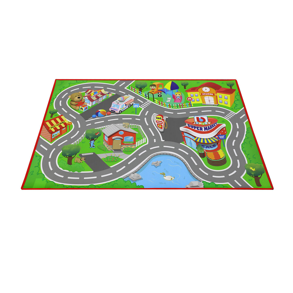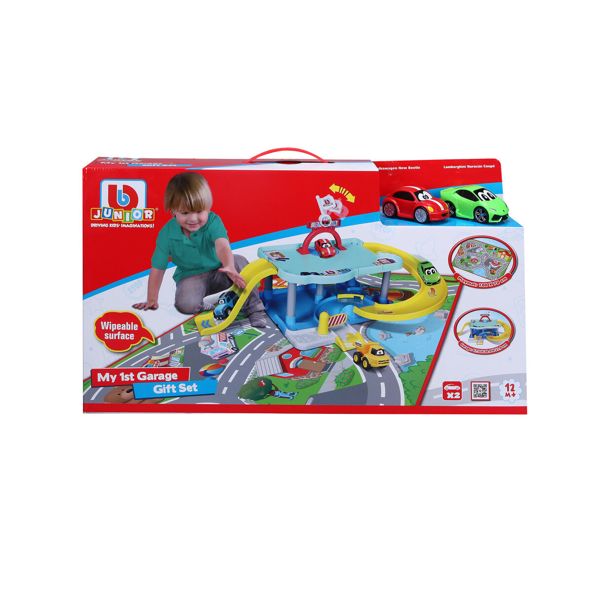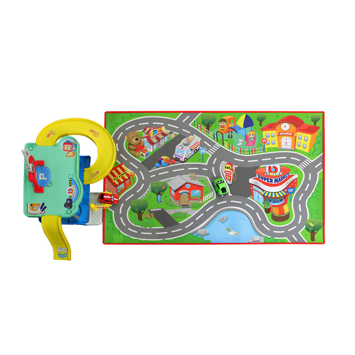 В комплект входят 2 автомобиля Volkswagen Beetle и Lamborghini 3,5, а также легко чистящийся коврик, имитирующий город.