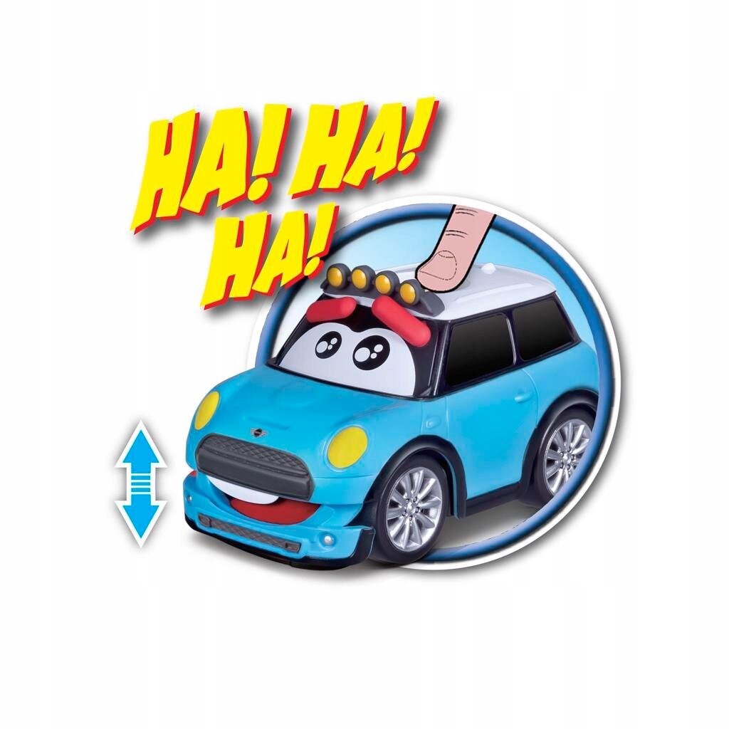 Автомобиль имеет официальную лицензию Mini Cooper. Когда вы нажимаете кнопку на крыше, брови и рот будут двигаться вверх и вниз, а машина издаст звуки смеха. Длина автомобиля: 13,5 см. Возраст: 12М+. Требуются батарейки; 2хААА. ВХОДИТ В КОМПЛЕКТ