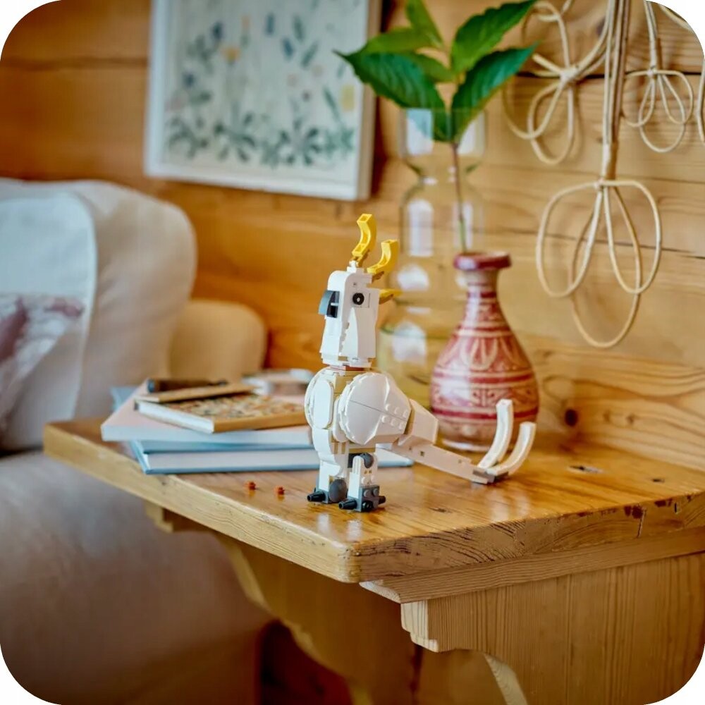 В этом наборе LEGO Creator 3 в 1 белый кролик двигает головой, ногами, ртом и уши , попугай может махать крыльями, хвостом, шеей и даже поворачивать голову на 360 градусов, а очаровательный тюлень оснащен подвижными ластами и ртом!Множество креативных аксессуаров для животных