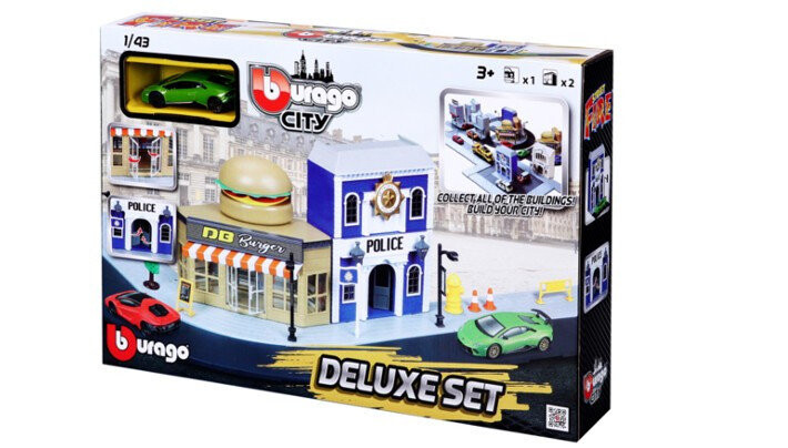 Набор Bburago City 18-31507 - в комплект входят здания с подвижными элементами (открывающиеся двери, окна), а также основание и фрагмент дороги.
