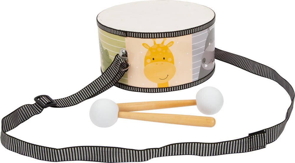 С помощью этого детского маленького ножного барабана современного дизайна маленькие музыканты смогут получить свой первый музыкальный опыт. Уютный на вид барабан оснащен регулируемым ремнем для переноски и деревянными палочками с пенопластовым покрытием длиной 18 см.