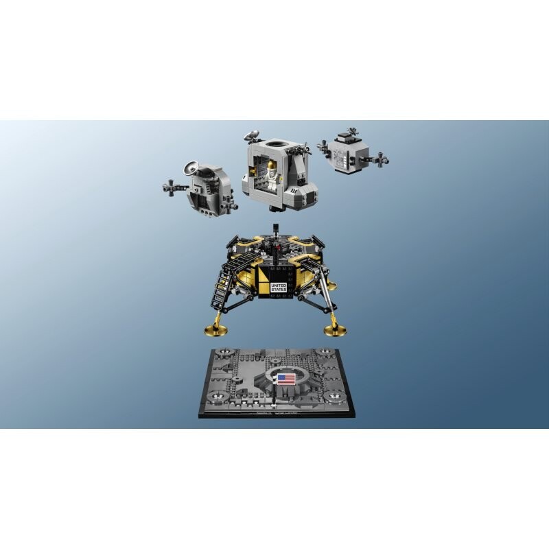 Отпразднуйте первую высадку человека на Луну с набором LEGO Creator Expert (10266) «Лунный посадочный модуль НАСА Аполлон-11», созданным в сотрудничестве с НАСА в честь его 50-летия. годовщина этого исторического события, восхитившего весь мир. Эта коллекционная модель представляет собой изысканно детализированную копию лунного модуля «Орел» Аполлона-11, стоящего на лунной поверхности с кратером, следами и американским флагом. Спусковая ступень имеет золотые ножки и панели, открывающуюся камеру, лазерные створки и лестницу, а взлетная ступень имеет детально проработанный интерьер, в котором могут разместиться два космонавта. Все это дополняет табличка с названием «Аполлон-11 Лунный модуль». Эта продвинутая модель идеально подойдет в качестве украшения дома или офиса. и его создание будет полезным испытанием с оттенком ностальгии. В набор входят две минифигурки космонавтов с украшениями НАСА и золотыми шлемами.