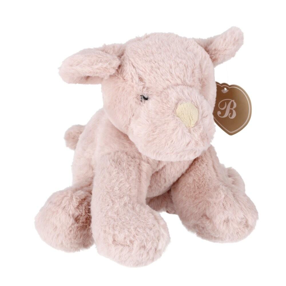 Розовый талисман Собака Рене (25 см). Его поверхность состоит из мелких волосков, имитирующих шерсть питомца. Благодаря этому игрушка очень мягкая и приятная на ощупь. Маленькие глазки с радужкой изготовлены из пластика. Коричневый нос делает игрушку милой. Еще были уши и небольшой хвост. У маленького щенка пухлая фигура. что придает ему очаровательный характер. В основании плюшевой игрушки расположен характерный горошек. Собака успешно сыграет роль классического талисмана. Однако его также можно использовать как элемент декора комнаты или кровати, а также послужить интересным реквизитом во время фотосессий.