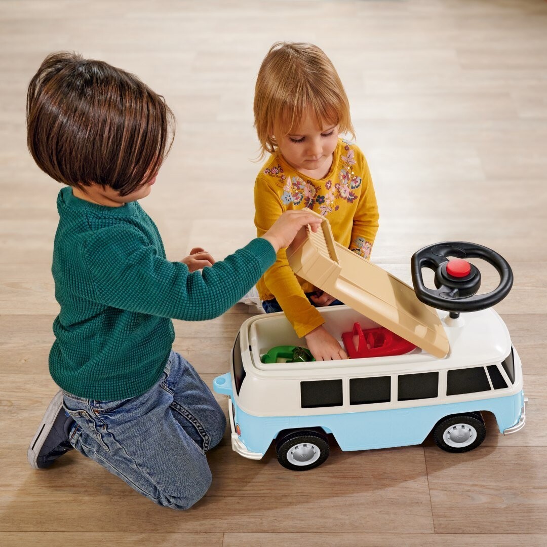 Фургон Jeździk от известной компании BIG — это автомобиль, напоминающий настоящий автомобиль Volkswagen. Он устойчив и безопасен и идеально подходит для детей, которые начинают свое приключение с транспортными средствами. Съемная крыша автомобиля скрывает просторный салон, в котором достаточно места для фигурок и кукол ростом до 12 см. Они могут сопровождать маленьких искателей приключений в путешествиях и всегда готовы составить им компанию во время коротких перерывов на отдых. Также фургон оснащен качественными, бесшумными колесами, которые особенно нравятся родителям и позволяют маленьким водителям спокойно ездить по садам и детским комнатам. Благодаря чрезвычайно мягким, не оставляющим следов пластиковым покрышкам также отсутствует риск оставлять следы на полу, поэтому райдер идеально подходит для использования внутри помещений. Ходовая часть устроена так чтобы дети могли проверить и развить новые навыки - садиться, слезать, толкать и управлять рулем. Это идеальная идея подарка для ребенка от 2 лет и старше.Характеристики: