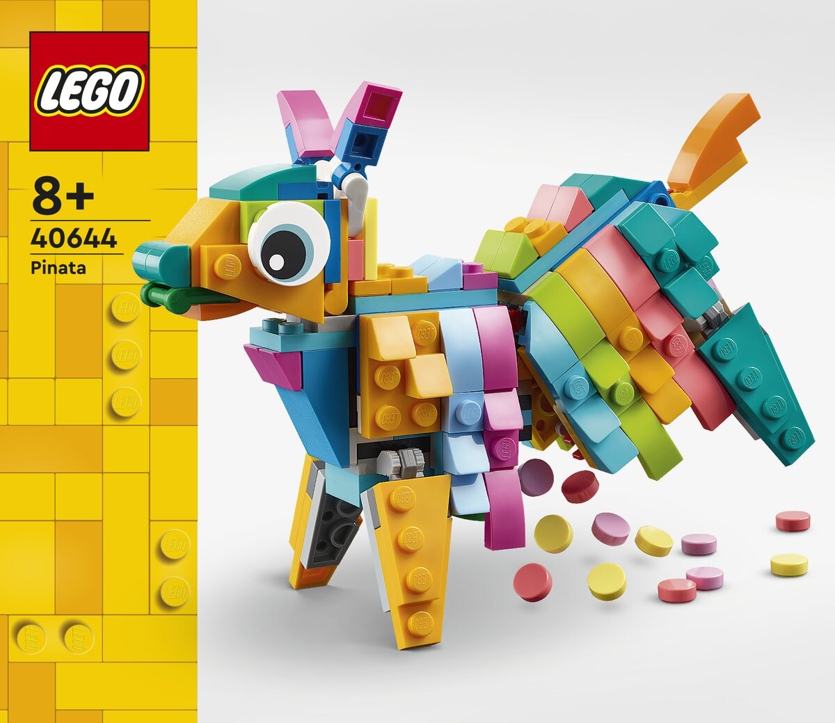 Набор LEGO Пиньята ( 40644) для детей от восьми лет и старше создаст праздничное настроение на каждом празднике. Традиционная мексиканская игра представляла собой красочного осла с подвижной головой, шеей, хвостом, ногами и ушами.