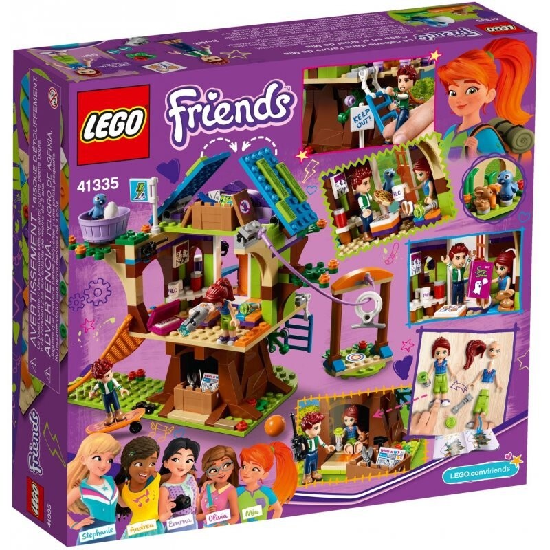 В набор входят минифигурки Мии и Дэниела, фигурка кролика Мими и фигурка птицы с корицей. В домик на дереве можно попасть по лестнице или сетке. На чердаке есть ящик для хранения вещей с открывающейся крышей. Также есть вторая кладовая в стволе дерева и домик для кроликов. Дополнительные аксессуары: скейтборд, водяной пистолет, фонарик, книга историй о привидениях, художественная плитка, пицца, кружка «Я люблю Хартлейк Сити», настольная игра, карта парка Хартлейк Сити, бумеранг. плитка с любовным письмом, шариком, птичьим гнездом, яйцом и морковкой.