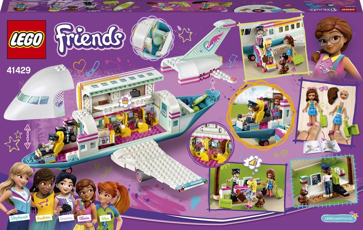 - Вдохновляйте на творческие приключения в самолете с фигурками мини-кукол Стефани и Оливии LEGO Friends. Дети могут помочь им зарегистрироваться и позволить им сесть на борт или представить, что они сидят в кабине и пилотируют самолет.
