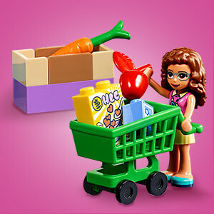 Пополните запас вкусных угощений во время похода в супермаркет вместе с Оливией и Стефани LEGO Friends. Садитесь в свою крутую машину и отправляйтесь в магазин. Помогите Стефани водить тележку и выбирать ее любимые блюда. Не забывайте о полезных фруктах и овощах! После загрузки покупок в машину пришло время небольшого перекуса – в кафе-мороженом по соседству ждет вкуснейший десерт из мороженого. Ваш ребенок будет в восторге от ролевых игр с этим набором для продуктового магазина! Пришло время еженедельных покупок с набором LEGO 41362 «Супермаркет Хартлейк». Позвольте вашему малышу пойти по магазинам с этим креативным набором. Дети могут подъехать на машине к магазину, выбрать товары для покупки, загрузить тележку и оплатить на кассе. и после всего этого отдохните немного с друзьями в кафе-мороженом. Этот набор LEGO 4+ был разработан для дошкольников и малышей. Крутой продуктовый магазин и машина на специальной стартовой базе позволяют даже новичкам ощутить гордость от самостоятельного строительства зданий, транспорта и многого другого. В набор входят простые инструкции, которые помогут вам начать собирать и играть, а также объяснят цель каждого этапа сборки юным любителям шопинга. Благодаря этому дети развивают воображение и уверенность в себе, познавая мир строительства из кубиков LEGO в декорациях, известных из серии LEGO Friends. В этот простой набор LEGO для продуктового магазина входит автомобиль. отдельная кафе-мороженое и множество пищевых аксессуаров, позволяющих долгие часы творческих ролевых игр. В набор входят две мини-куколки.