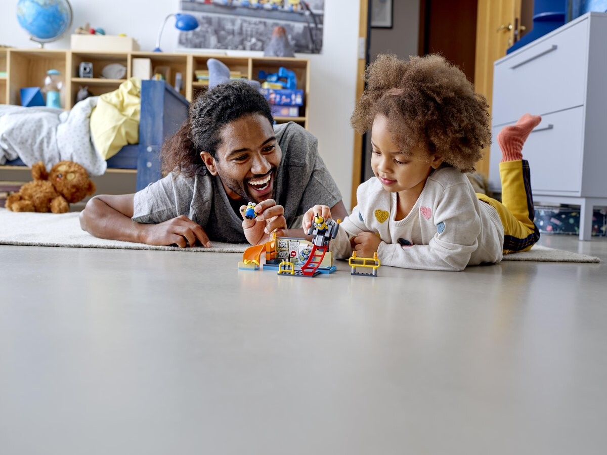 - Поклонникам миньонов будет очень весело воссоздание сцен из фильма «Миньоны: Восхождение Грю». Веселье не прекращается после того, как модель построена: фигурки Кевина и Отто открывают множество возможностей для ролевых игр.