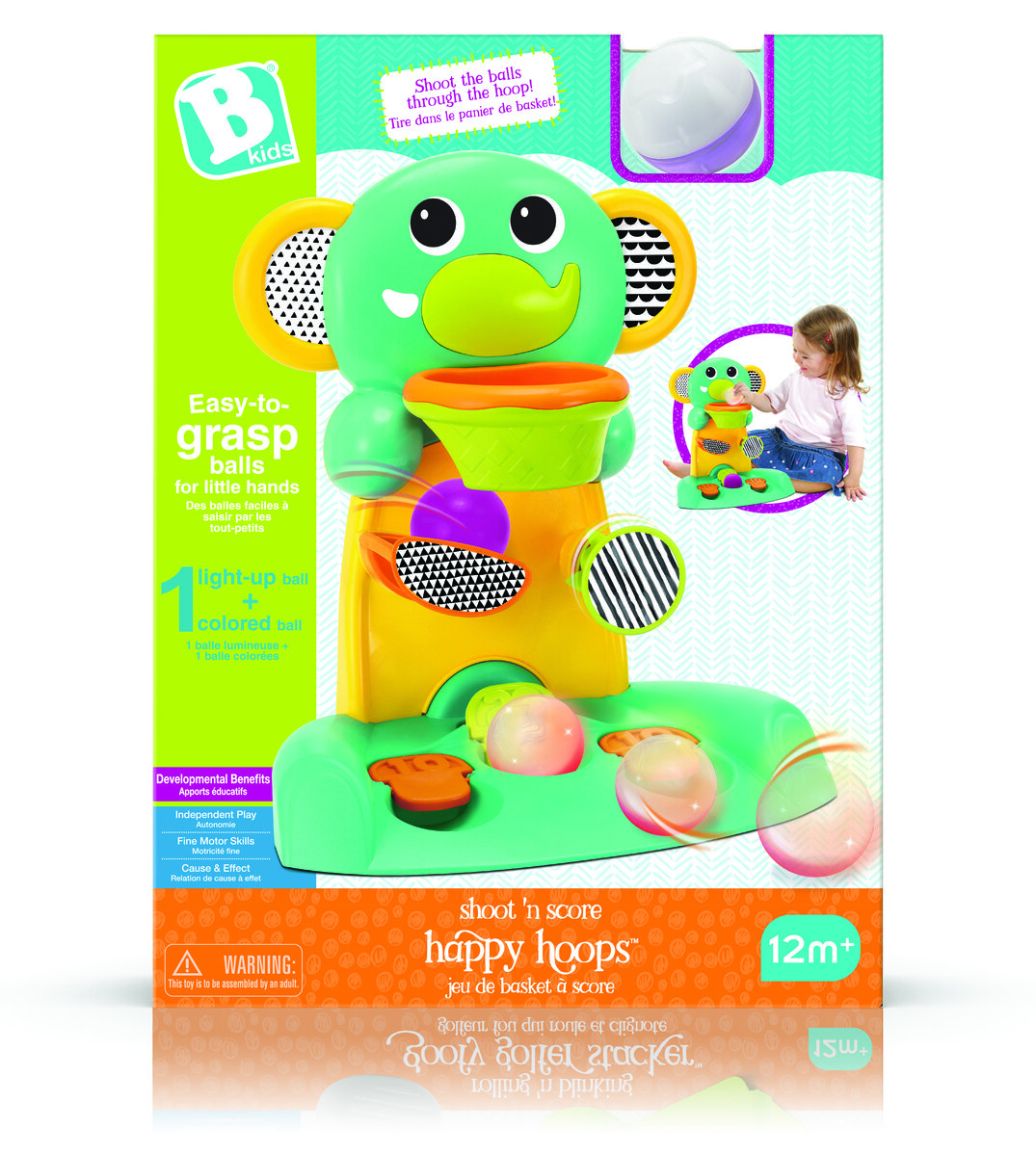 Веселый слон – идеальная игрушка для маленьких баскетболистов! Малыши могут бросить светящийся и мигающий шарик в корзину, а затем наблюдать, как красочные элементы вращаются и набирают очки.