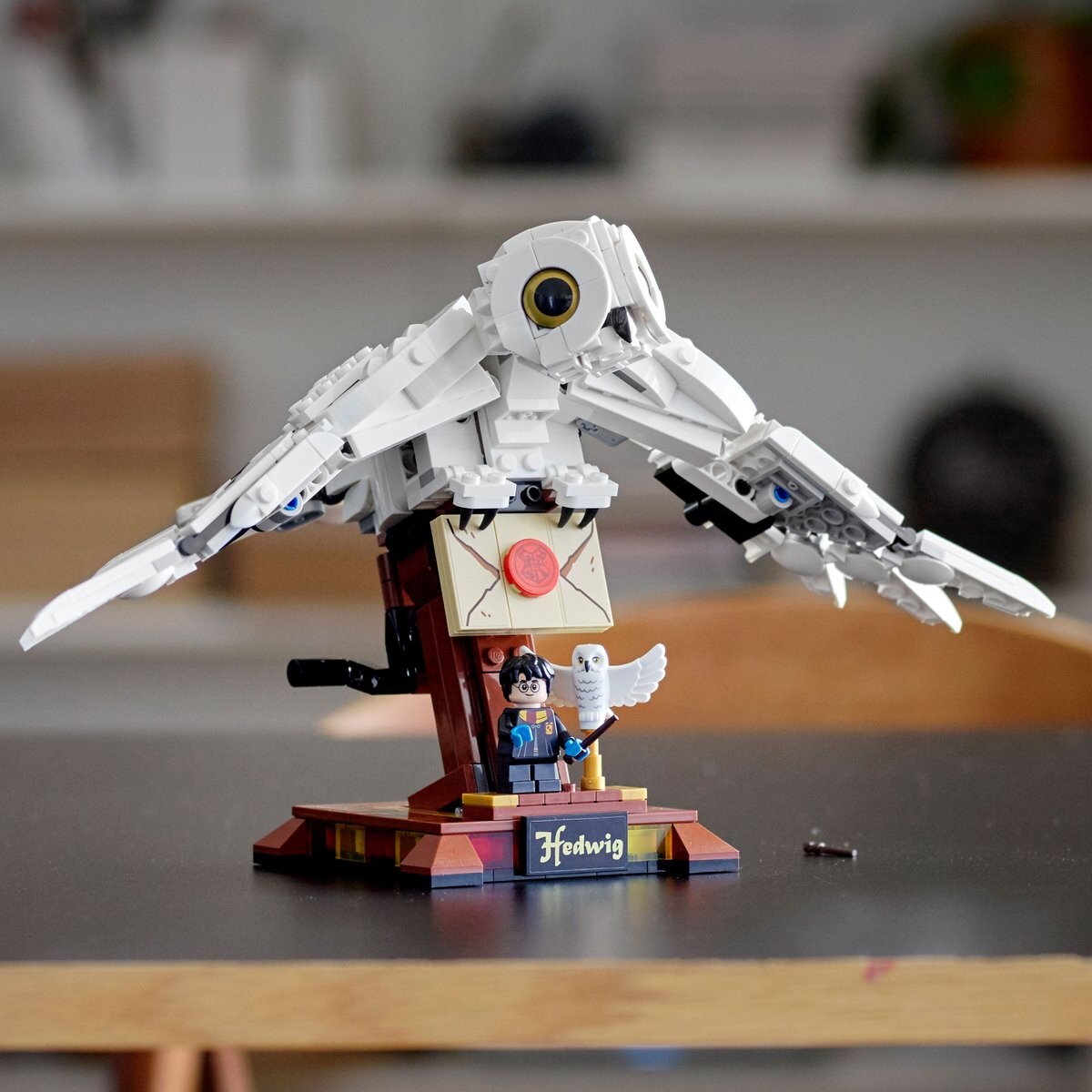 Хедвиг — необыкновенная и грациозная сова с волшебным личность, которую фанаты Гарри Поттера знают по фильмам. Модель, состоящая из 630 элементов, имеет размах крыльев ок. 34 см и показывает Хедвиг в полете — при доставке Гарри приглашения в Хогвартс. Таинственный рычаг