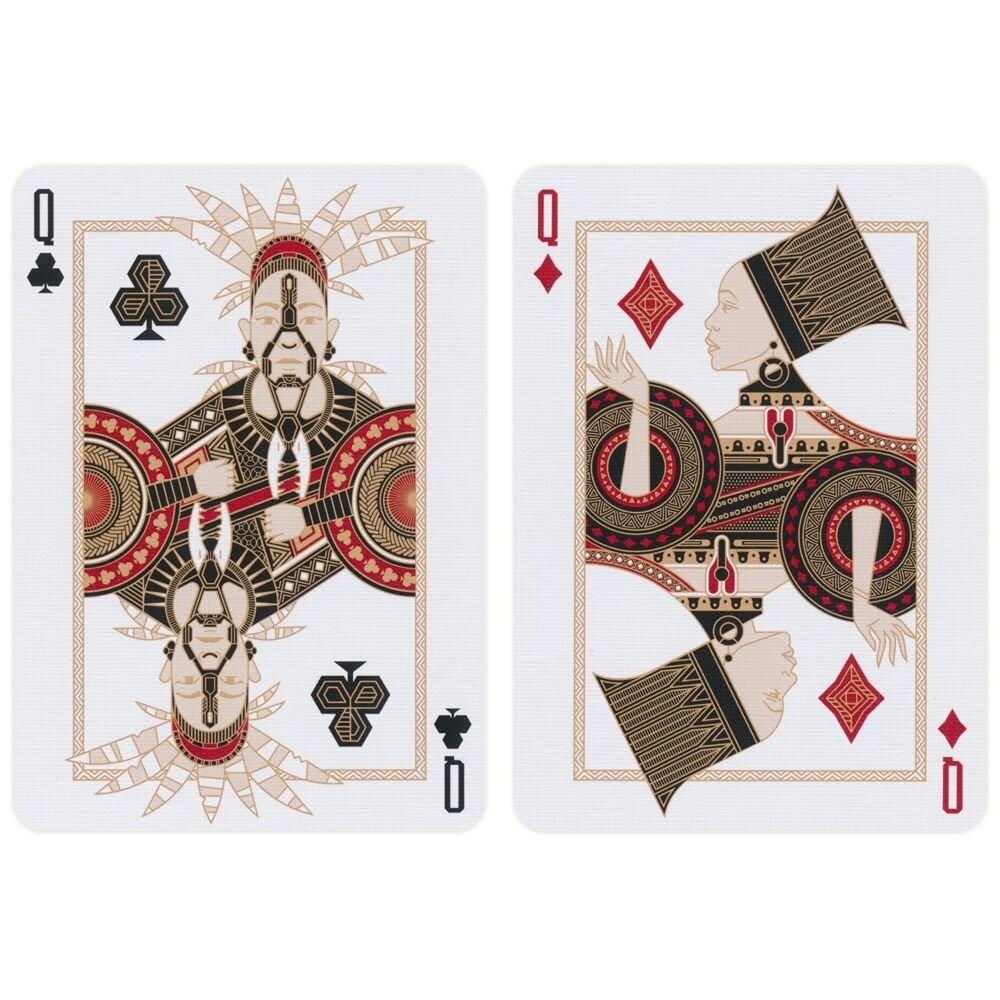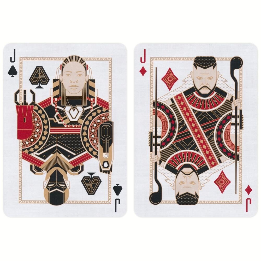 На придворных картах изображены персонажи из вселенной Черной Пантеры, такие как Т'Чалла (Черная Пантера), Шури, Окойе и другие ключевые персонажи. Каждый персонаж прекрасно проиллюстрирован, отражая его уникальные личности и характеристики. Дизайн «Черная пантера» — обязательный предмет коллекции как для поклонников кинематографической вселенной Marvel, так и для коллекционеров высококачественных игральных карт.
