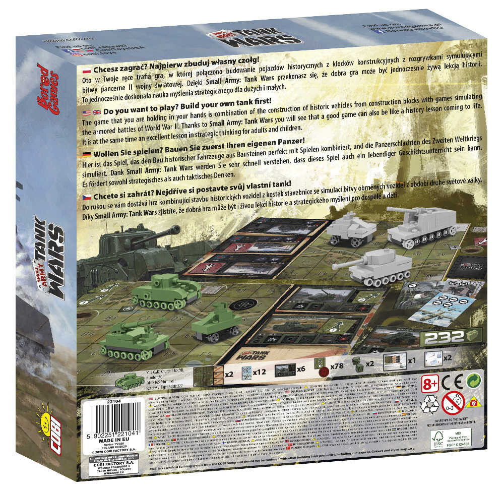 Игрушки бренда COBI — это не только источник развлечения, но и ценный образовательный инструмент. Создавая модели из блоков COBI, дети развивают строительные навыки, творческие способности, понимание технологий, истории и культуры. Кроме того, обучение терпению, способность сотрудничать и улучшение ручных навыков — это лишь некоторые из многих преимуществ взаимодействия с этими игрушками. COBI позволяет детям развиваться во многих областях, доставляя при этом радость творчества и исследования. Игра «Блоковый бой». Удачное сочетание классической игры с кораблями и шахматной стратегии, в которой пешками являются мини-модели танков, сделанные из строительных блоков COBI. Каждый игрок легко освоит предельно простые и понятные правила игры, основанные на понятных иконках. Коробка в комплекте две игровые доски, два кубика, карты, жетоны, шесть мини-танков, которые можно построить из строительных блоков, и простое многоязычное руководство. Образовательные преимущества игрушек COBI — один из важных элементов, привлекающих внимание родителей, учителей и опекунов.
