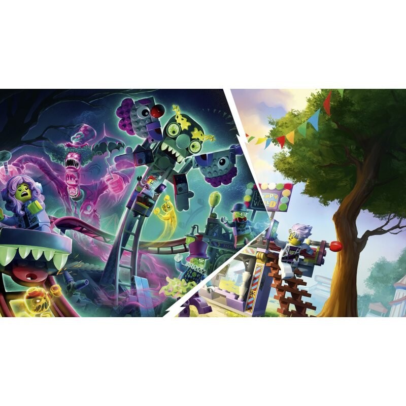 Любителям виртуальной реальности и видеоигр понравится удивительный мир LEGO Hidden Side, где цифровая и материальная реальность переплетаются, создавая дополненную реальность (AR) и позволяя играть как в одиночном, так и в многопользовательском режиме. Парк развлечений с привидениями 70432 — это игрушка, которая позволит вам охотиться на привидений. Он сочетает в себе модель кубика LEGO с приложением. поэтому взаимодействие с этой моделью отражается в цифровом мире. Цифровая интерактивная игрушка-конструктор Модель парка развлечений с привидениями оживает, когда вы видите ее на экране своего смартфона или планшета с помощью приложения LEGO Hidden Side AR. Дети могут охотиться на призраков, открывать и решать головоломки или сразиться с могущественным клоуном Трагико. В комплект также входят американские горки, десантная башня и пять минифигурок, так что вы можете дать волю своему воображению и разыграть ролевую игру! Цифровая игра, которая постоянно развивается. Мир LEGO Hidden Side разворачивается в вымышленном городе Ньюбери, здания и жители которого захвачены призраками. Мы постоянно обогащаем мир AR новым контентом, персонажами и уникальными событиями.
