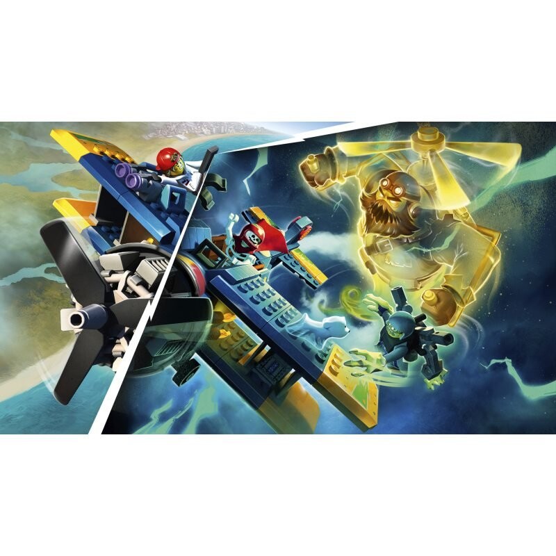 Сядьте за штурвал каскадерского самолета El Fuego и погрузитесь в дополненную реальность мира LEGO Hidden Side в одиночном или многопользовательском режиме. Постройте удивительный винтовой самолет с помощью минифигурок Джека и Мэри Брейсом. Затем установите бесплатное приложение Hidden Side AR и отсканируйте модель с помощью смартфона или планшета, чтобы увидеть мир цифровых призраков. Теперь вы можете охотиться на призраков, искать улики и сражаться с самым могущественным призраком, Гарри Джаном!