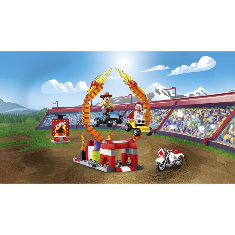Вашему малышу понравится вкус приключений и острых ощущений с каскадерским шоу герцога Кабума LEGO 4+ (10767) из мультфильма Disney Pixar «История игрушек 4». Этот интересный конструктор был разработан специально для дошкольников и малышей. Он включает в себя подвижный пылающий обруч с прикрепленной платформой и две специальные стартовые подставки, которые позволят даже новичкам ощутить гордость от самостоятельной сборки транспортных средств, зданий и многого другого. В набор также входят игрушечный мотоцикл, три штабелируемые бочки, две машины и знак трюка, который можно опрокинуть. В набор входят простые инструкции, которые помогут вам начать собирать и играть, а также объяснят юным каскадерам цель каждого этапа сборки. Благодаря этому у детей развивается воображение и уверенность в себе. знакомство с миром строительства из кубиков LEGO в декорациях, известных из фильмов «История игрушек». Две минифигурки, входящие в набор, позволяют весело провести ролевую игру.