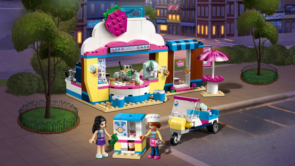 Проведите веселые моменты с Эммой и Зобо в технологическом магазине кексов LEGO Friends Оливии. Испытайте сочетание технологий и гастрономии с набором LEGO Friends (41366) «Магазин кексов Оливии». Вы найдете множество уникальных гаджетов для творческих игр: в пекарне есть поднос, который вращается на шестеренках, вдохновленный оборудованием суши-ресторана в технологическом районе Хартлейк-Сити. Здесь также есть потрясающий автомат для раздачи кексов, обеденные зоны в помещении и на открытом воздухе, а также кухня с духовкой. раковина и посуда для выпечки. Еще одна порция творческого веселья — небольшой самокат, на котором можно развозить игрушечные кексы по Хартлейк-Сити. В комплект входят две фигурки мини-куколок: Оливия и Эмма, а также фигурка робота.
