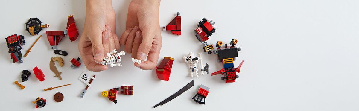 Отражайте атаки противника, используя огромную катану и две поменьше. Наконец, стреляйте в генералов-скелетонов из шипометов! Постройте механического самурая вместе с воином-самураем Нией! Помогите Ние, одетой как Самурай Икс, сразиться с Кранчей и Нукалем с помощью набора «Механические самураи» LEGO NINJAGO Legacy (70665). Подвижная фигурка меха-самурая имеет открывающуюся кабину, в которой можно разместить минифигурку, два шипометных пистолета, подвижные руки и ноги, большую катану в одной руке и две маленькие в другой. В этот набор LEGO NINJAGO также входят три минифигурки с крутым оружием для ролевых самурайских сражений и классических сцен из сериала NINJAGO Masters of Spinjitzu.
