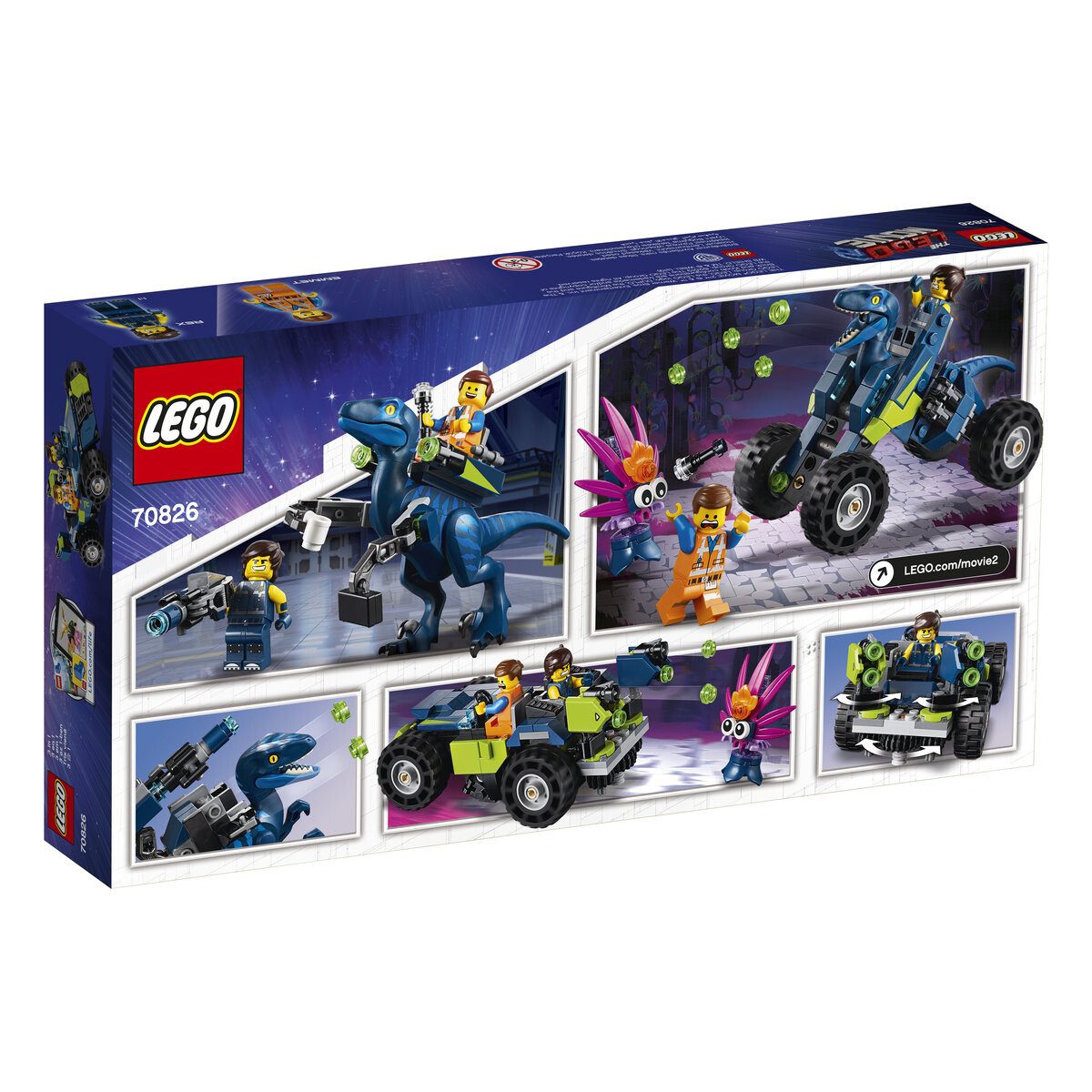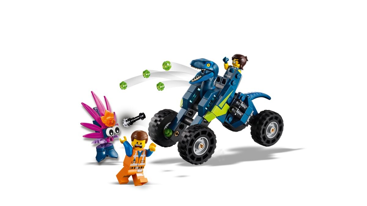 Помогите Рексу и Эммету построить внедорожник Рекса из набора «LEGO MOVIE 2 3 в 1» и отразить нападение животных! Стреляйте из шипометов на этом удивительном внедорожнике и динозавре-разведчике Рекса. Заберите пистолет у раптора и вложите его в руку Рексу. Затем перестрой внедорожник в квадроцикл динозавра или представительского динозавра и поставь ему когтеточку! Восстановите внедорожник Рекса 3-в-1 с помощью динозавра-разведчика! Продемонстрируйте универсальность мастера-строителя и перестройте LEGO MOVIE 2 (70826 Rex Off-Road) с набором «Динозавр-разведчик 3-в-1» в квадроцикл-динозавр или представительский динозавр. Внедорожник оснащен двумя сиденьями для минифигурок и вращающейся башней с двумя пулеметами сзади. Динозавр-разведчик оснащен щелкающими челюстями, подвижными ногами, двумя шипометами и сборным съемным пистолетом (нефункциональным). который также можно положить в руку минифигурки. 2 минифигурки и сборная фигурка животного для воссоздания динамичных сцен из «ЛЕГО ФИЛЬМ 2».