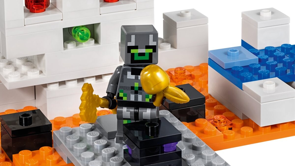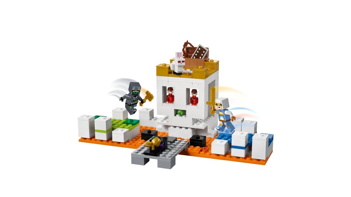 Хватай меч или топор, занимай свое место на подиуме и готовься к бою с набором LEGO Minecraft 21145 «Арена Черепа»! Следите за стрельбой слизи из черепа, перепрыгивайте через кипящую лаву и побеждайте в дуэли с противником, чтобы получить приз - золотое яблоко. Победите кролика-убийцу, охраняющего лечебные зелья, затем поднимитесь по черепу и найдите сундук с луком и щитом. Испытайте собственные приключения LEGO Minecraft в этом великолепном наборе LEGO, включающем две минифигурки игроков Minecraft с крутыми скинами! Пришло время начать турнир на Арене черепов LEGO Minecraft! Победите своего противника, чтобы получить золотое яблоко на Арене Черепа. Остерегайтесь стрелка-слизняка и столкнитесь с кроликом-убийцей, охраняющим лечебные зелья и сундук. В набор входят две минифигурки. Остерегайтесь слизняка и победите противника в борьбе за золотое яблоко. а затем столкнитесь с кроликом-убийцей, охраняющим лечебные зелья и сундук со щитом и луком. Вы фанат Майнкрафта? С набором LEGO Minecraft 21145 Skull Arena вы сможете своими глазами ощутить приключения этой популярной компьютерной игры. Объединив его с другими наборами из серии, вы сможете построить свою собственную вселенную LEGO Minecraft. В набор входят две минифигурки игроков Minecraft с уникальными скинами.