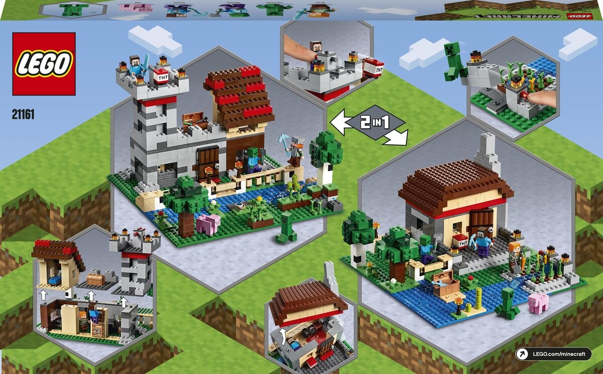 Блоки LEGO Minecraft Творческая мастерская 3. 0 21161Творческая мастерская 3 . 0 LEGO Minecraft (21161) — это набор различных кубиков LEGO и строительных элементов, который позволяет перенести радость и азарт видеоигр в реальный мир. Классные строительные блоки для детей, играющих в Minecraft. В наборе «Творческая мастерская» дети найдут множество идей и вдохновений, связанных с Minecraft. Откройте коробку и испытайте приключения Minecraft в реальном мире! В набор входят популярные персонажи игры — Стив, Алекс и Крипер, а также свинья, зомби и множество интересных функций, таких как установка ТНТ для борьбы с Крипером! Интерактивная инструкция! Инструкции PLUS – интерактивное руководство. который доступен в бесплатном приложении LEGO Building Instructions для смартфонов и планшетов. Функции масштабирования и поворота помогут детям самостоятельно построить замок и ферму и весело провести время. Инструкции по сборке других моделей вы также можете найти в Интернете. Перенесите игру Minecraft в реальный мир с помощью кубиков и фигурок LEGO. Наборы LEGO Minecraft дают детям инструменты для свободной и независимой игры. Эта фантастическая коллекция сборных игрушек, действие которой происходит в мире Minecraft, поднимет игроков на новый уровень творческой игры!