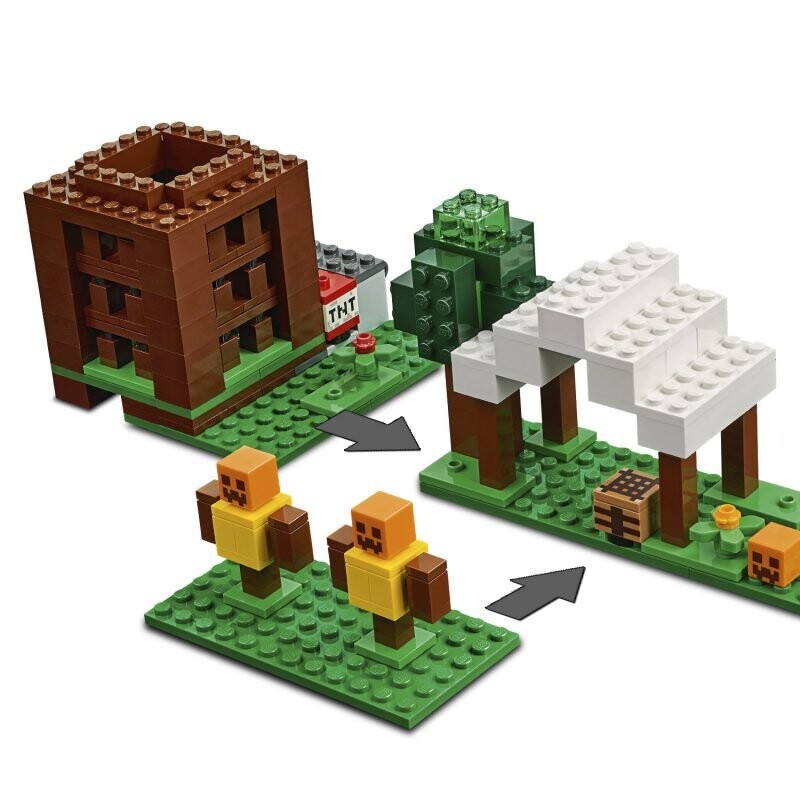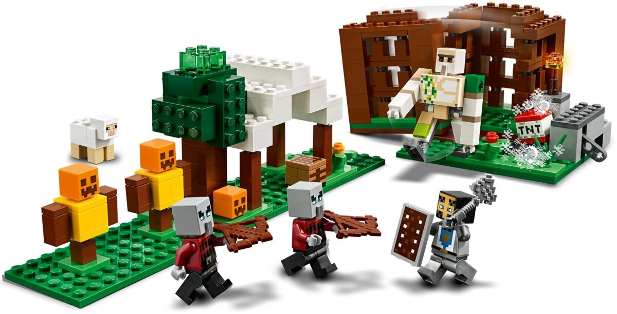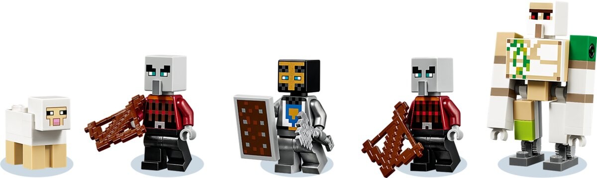- Захватывающая спасательная миссия с участием популярных персонажей Minecraft — Разбойников и Железного Голема — в наборе LEGO Minecraft, состоящем из трех частей. который можно восстановить.